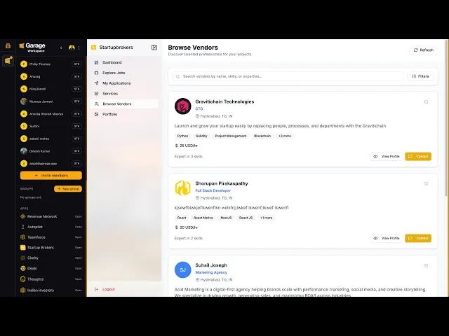 A marketplace where startups can discover, hire, and collaborate with trusted vendors — the Fiverr for the startup economy.